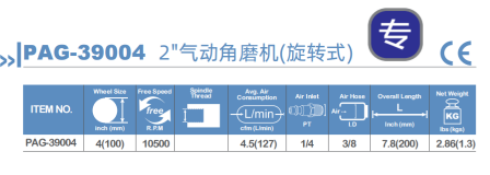 PAG-39004 2''气动角磨机(旋转式)