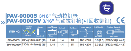 PAV-00005V 3/16"气动拉钉枪(可回收铆钉)
