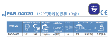 PAR-04020 1/2"气动棘轮扳手(3齿)
