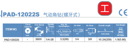 PAD-12022S 气动角钻(螺牙式)